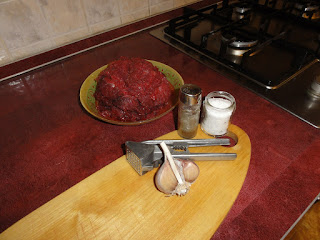 Эту лепешку можно замариновать в любом маринаде, который вы любите. Но в этом рецепте мясо только обмазывается (не очень густо!) кашицей, состоящей из смеси раздавленного чеснока, перца и небольшого количества соли.